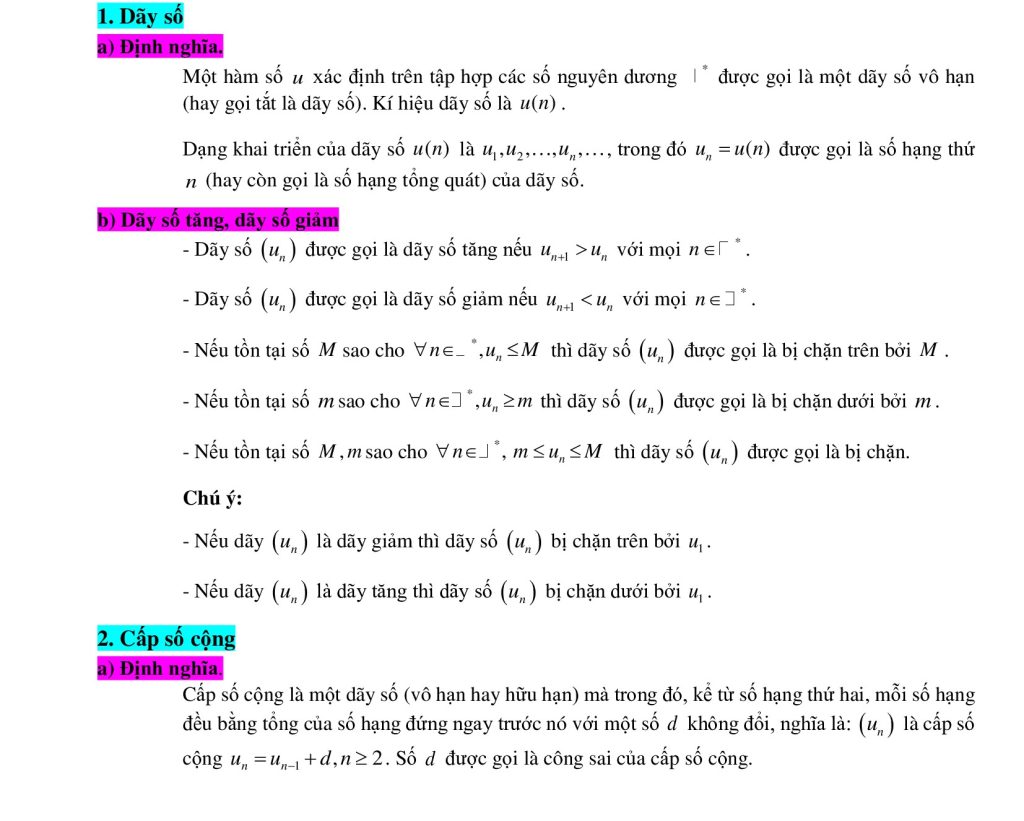 Dãy số, cấp số cộng, cấp số nhân là phần kiến thức cốt lõi, thường xuyên xuất hiện trong kiểm tra và đề thi. Nội dung chính bao gồm: